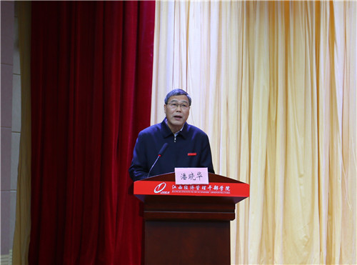 省政府办公厅相关处室负责人,党委副书记、院长秦夏明,省纪委省监委驻省工信厅纪检组组长郭国君,学院党委委员、副院长衷敬华、肖鸿晶、熊运儿、林蓉,各院(系)、部门负责人,思想政治理论课教师及部分教职工和学生代表,共计400余人聆听报告。