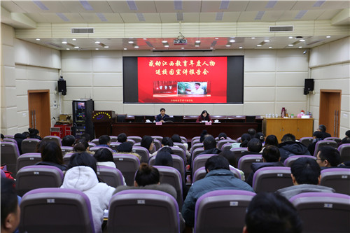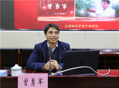 12月30日上午,学院举办“新时代先进人物进校园”事迹报告会,第三届感动江西教育年度人物提名奖获得者、江西农业大学教授、博士生导师曾勇军应邀作报告。党委委员、副院长林蓉主持报告会,各党总支(支部)书记、青年干部理论学习小组成员、机关青年干部、团总支负责人、辅导员,院(系)青年教师、学生代表现场聆听。