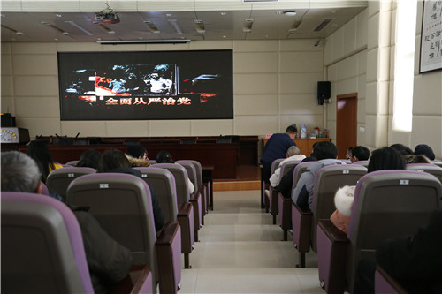 12月16日下午,学院组织全体科级及科级以下工作人员在一教学术报告厅集中观看警示教育片《叩问初心》及党章公开课《党的纪律建设》《坚持党要管党、全面从严治党》。