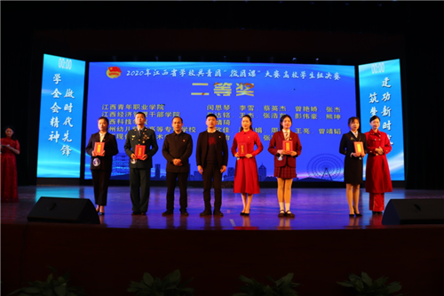 外语系杨蕾老师主讲的《忆抗美援朝战争,学战争制胜法宝》,荣获高校团干教师组“特等奖”;信工系学生肖达铭、王杰、张浩东、彭伟豪、熊坤等五位同学主讲的《青春筑梦军营,锤炼“六有”品格》,荣获高校学生组“二等奖”。