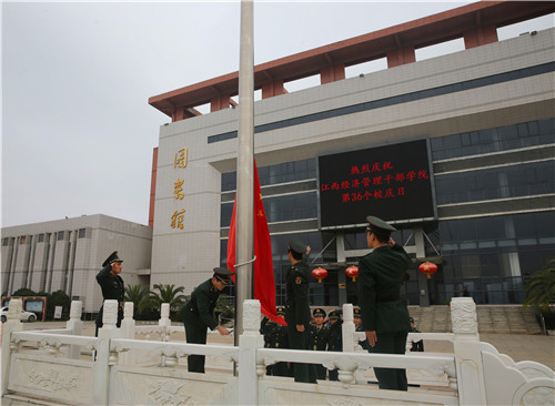 11月29日,学院迎来建校36周年纪念日。上午10点,学院在图书馆前广场举行升国旗仪式。伴随着庄严的国歌声,国旗护卫队将五星红旗冉冉升起,在场师生向国旗行注目礼。升旗仪式结束后,老师带领部分学生参观学院校史馆,回顾学院36年历程,同学们感慨万分。