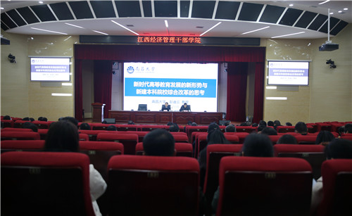 12月4日下午,学院在航空大楼多功能厅举行高校综合改革专题讲座。江西应用科技学院党委书记、督导专员、南昌大学博士生导师彭迪云教授应邀作专题辅导报告。学院党委书记潘晓华出席并主持,党委副书记、院长秦夏明,党委委员、副院长衷敬华、肖鸿晶、熊运儿、林蓉及全体教职工一同聆听报告。