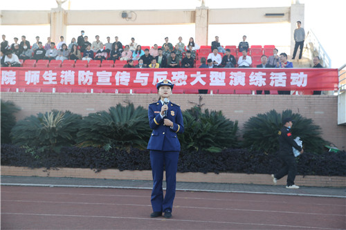 11月11日下午,学院在田径运动场组织开展校园反诈骗、反恐防爆及消防安全宣传教育活动,邀请南昌市公安局反诈中心、特警支队大院大队、南昌市消防救援支队大院大队来院开展现场宣讲及示范演练。党委委员、副院长林蓉,学院全体消防志愿队员、教职工代表及全体新生参与活动。 林蓉代表学院向来院开展宣传演练的公安民警、消防官兵表示亲切慰问和衷心感谢。她指出,全院师生要深入学习贯彻习近平总书记关于安全工作的重要讲话和系列批示指示精神,牢固树立全面贯彻总体国家安全观,增强忧患意识。要充分认识电信诈骗的危害和消防安全的重要性,进一步提高防范意识。要以此次宣传演练活动为契机,加强全面排查,防患于未然,把安全隐患消除在萌芽状态,努力营造平安和谐的校园。