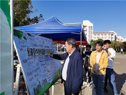 11月12日,学院节能办在校园商业街前广场举办“绿色回收进校园”活动。学院党委副书记、院长秦夏明到场指导。