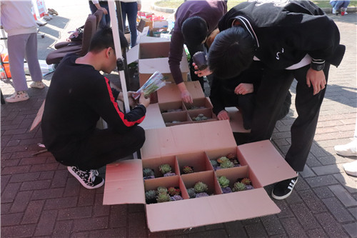 秦夏明指出,废旧物回收换绿植活动可以让学院形成“资源循环再利用,环保绿色齐受益”的良好风尚,非常有意义,广大师生要积极参与到活动中来。