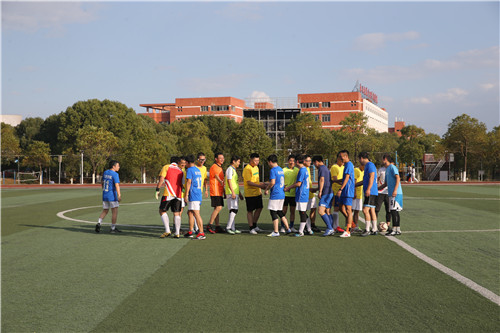 本次比赛共有2支队伍,共计27名球员参加。赛场上,球员们情绪高涨,精彩迭起。有半百的沙场老将,也有刚入教坛的球场新兵,精彩的画面不时赢得现场观战师生的阵阵喝彩。大家秉承“友谊第一,比赛第二”的原则,将个人的特长与团队的协作充分发挥,赛出了友谊,赛出了风格,赛出了水平。最终,A队以4:2的比分获胜。