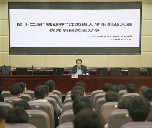 党委副书记、院长秦夏明深入信息工程系201物联网班,参加并指导该班以创业大赛为主题的团日活动。活动中,在第十二届“挑战杯”江西省大学生创业大赛中获得优异成绩的同学分享了参赛的心路历程。秦夏明充分肯定了参赛同学所取得的成绩,鼓励同学们积极参加各类技能竞赛,勉励他们珍惜大学时光,做到全面发展,努力提升综合素质。