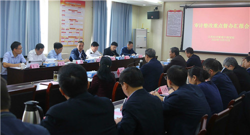10月15日,省人大预算工委主任周山印、环资委副主任陈松远、预工委副主任周国亮、省审计厅二级巡视员刘功滨等督办组成员一行来院督办审计整改工作。学院党委书记潘晓华,党委副书记、院长秦夏明,党委委员、副院长肖鸿晶、林蓉,以及学院内设机构主要负责人参加审计整改督办会。