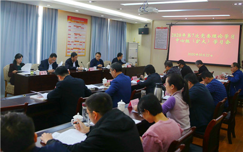 10月22日下午,学院召开2020年第7次党委理论学习中心组(扩大)学习会,专题学习贯彻习近平总书记关于教育的重要论述和重要指示批示精神。学院党委书记潘晓华主持并讲话,党委副书记、院长秦夏明,党委委员、副院长衷敬华、肖鸿晶、林蓉,党口部门负责人、各院(系)党总支书记参加学习,青年干部理论学习小组成员代表列席学习会。