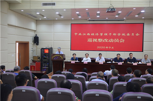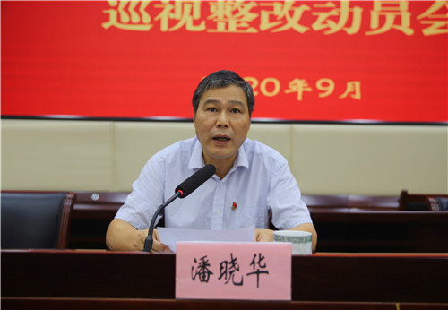 9月11日下午,学院在一教学术报告厅召开巡视整改动员会。学院党委书记潘晓华作巡视整改动员讲话。省纪委省监委驻省工信厅纪检监察组组长郭国君等,学院党委副书记、院长秦夏明,党委委员、副院长衷敬华、肖鸿晶、熊运儿,学院中层干部及巡视整改办公室工作人员参加会议。会议由秦夏明主持。
