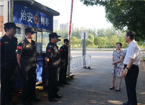 潘晓华一行还慰问了全体值班保安人员,学院保安队队长与其中一名队员都是退役军人,他们表态将尽职尽责,全力以赴保障学院疫情防控、校园安全稳定等各项工作,发扬部队作风,展现军人风采。