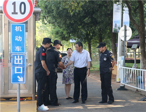 潘晓华与执勤退役军人亲切交谈,关心他们的工作生活,并通过他们向全院退役军人致以节日的祝福和崇高的敬意。他说:“特殊时期总会有军人的身影出现,学院防汛突击队中也有军人的身影,你们在役的时候是钢铁长城,退役之后仍然是钢铁长城”。他指出,退役军人在学院事业发展中也作出了重要贡献,全院要坚持以习近平新时代中国特色社会主义思想为指导,贯彻落实习近平总书记关于退役军人工作的重要指示精神,用心用情用力做好退役军人服务管理工作,让军人充分感受到学院的关怀和温暖。
