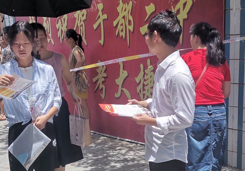 7月7日、8日、9日三天高考日,根据学院统一安排,组织开展了进高考考点宣传活动。