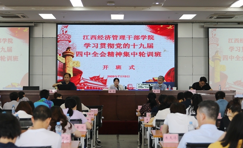 为深入学习贯彻党的十九届四中全会精神,进一步提高学院干部职工的政治理论水平,学院党校于7月13日至7月17日举办了两期教职工学习贯彻党的十九届四中全会精神集中轮训第一阶段培训班。学院党委委员、副院长林蓉参加开班式并讲话,组织人事部部长唐勇参加开班式,组织人事部副部长、党校常务副校长程鹏主持开班式,学院299名教职工参加培训。