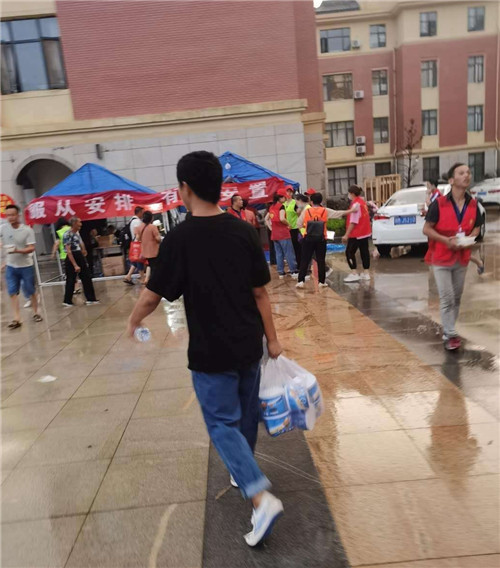 飞行技术学院192无人机班学生彭桂越志愿成为平安永修抗洪抢险志愿者队伍中的一员,负责秩序维护、后勤保障等力所能及的志愿服务,通宵工作毫无怨言。