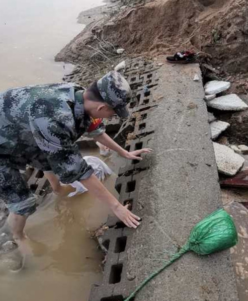 【财贸管理系191物流管理班学生龚志发在防汛一线】