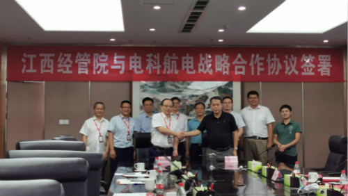 座谈会后,秦夏明与何刚签署了《江西经济管理干部学院 中电科航空电子有限公司战略合作协议》。