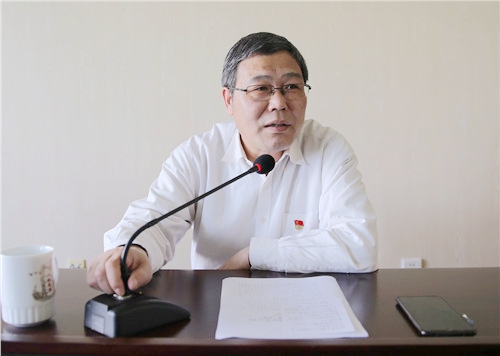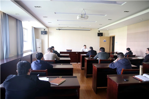 4月16日下午,党委书记潘晓华在行政楼四楼会议室为直属机关第一、二、三、十四党支部党员讲授抗“疫”专题党课。
