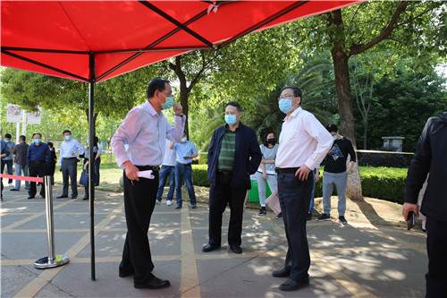 4月29日下午,学院开展2020年春季开学疫情防控第二次演练,学院党委书记、学院新冠肺炎疫情防控工作领导小组组长潘晓华,党委副书记、院长、学院新冠肺炎疫情防控工作领导小组组长秦夏明,党委委员、副院长衷敬华、肖鸿晶、熊运儿、林蓉指导观摩演练过程,并提出改进意见和建议。学院新冠肺炎疫情防控工作领导小组成员及相关工作人员参加演练。演练由衷敬华主持。