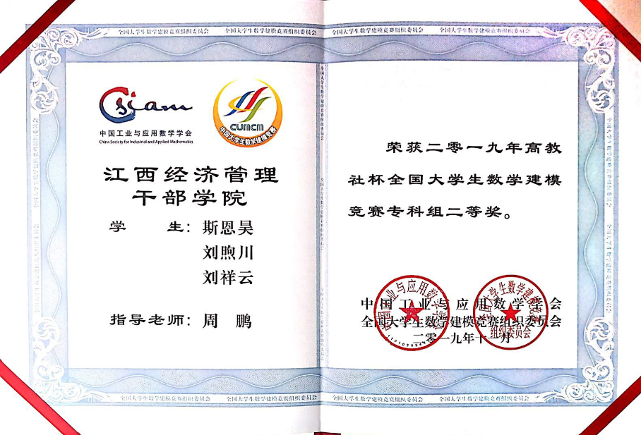 近日,2019年全国大学生数学建模竞赛获奖名单公布,学院荣获国家二等奖(专科组)1项,江西省三等奖(专科组)1项。