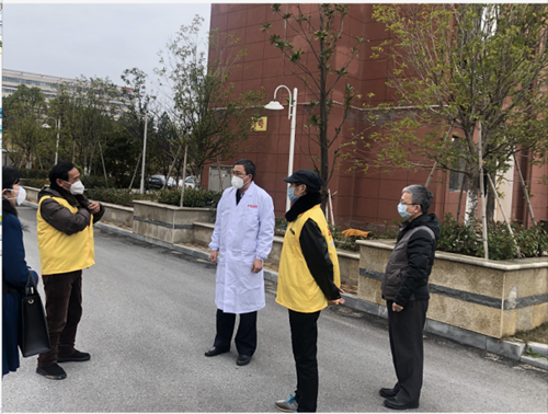 2月7日下午,学院新冠肺炎疫情防控工作领导小组组长、党委书记潘晓华来到学院共建社区云溪花园,对接社区开展疫情防控工作。