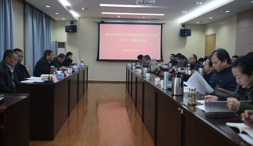 在前期学习宣讲的基础上,12月20日下午,党委书记潘晓华主持召开2019年第14次党委理论学习中心组(扩大)学习会,对党的十九届四中全会精神进行交流研讨。在家院领导,各院系党总支书记,直属党支部书记,直属机关党支部书记及学院青年干部理论学习小组成员一并参与了学习。