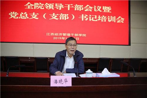 11月3日上午,学院召开全院领导干部会议,党委书记潘晓华主持会议传达学习党的十九届四中全会和全省领导干部会议精神,全体在家院领导、副处级以上干部及党(总支)支部书记参加会议。
