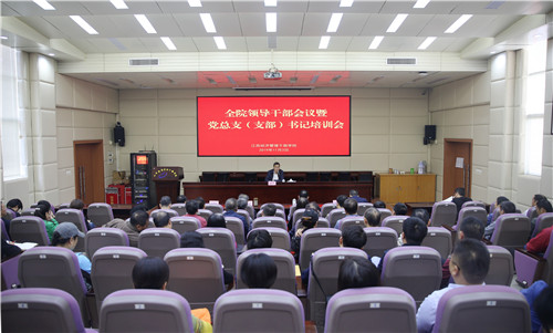 潘晓华就学习宣传贯彻党的十九届四中全会精神进行了部署。他指出,学习宣传贯彻好党的十九届四中全会精神是全院上下当前和今后一个时期的重大政治任务,要利用党委理论学习中心组学习会、三会一课、主题党(团)日等形式组织好宣传学习,做到领导带头学、教师深入学、全员参与学,在全院师生中迅速掀起学习宣传贯彻党的十九届四中全会精神的热潮;要将学习四中全会精神纳入干部教育培训的必修课,融入到思想政治理论课教学中;要把学习宣传贯彻全会精神与进一步巩固深化“不忘初心、牢记使命”主题教育成果结合起来,通过学习进一步增强“四个意识”、坚定“四个自信”、做到“两个维护”。