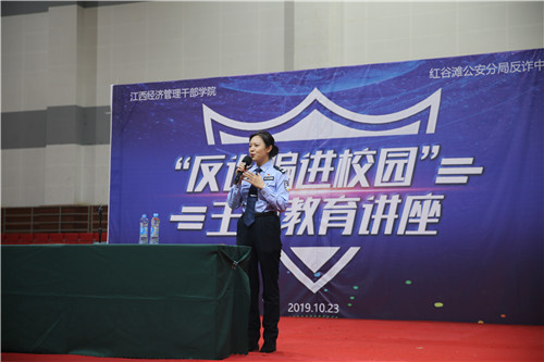 10月23日晚,学院综治办联合市公安局、红谷滩公安分局在大学生活动中心开展“反诈骗进校园”主题教育宣讲活动。学院党委副书记、院长秦夏明,党委委员、副院长熊运儿到现场指导,学院相关部门及600余名师生代表参加。
