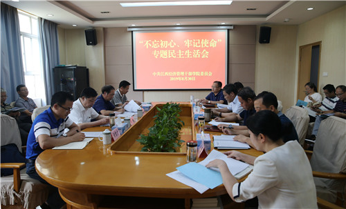 8月30日,根据中央的统一部署和省委的具体安排,学院召开党委领导班子“不忘初心、牢记使命”专题民主生活会。学院党委书记潘晓华主持会议并作总结讲话,省委第八指导组组长黄河到会指导并作点评,省纪委省监委驻省工信委纪检监察组组长郭国君出席会议。全国人大代表黄俐波,党口部门负责同志,各系党总支部书记和部分教师、老同志代表列席会议。