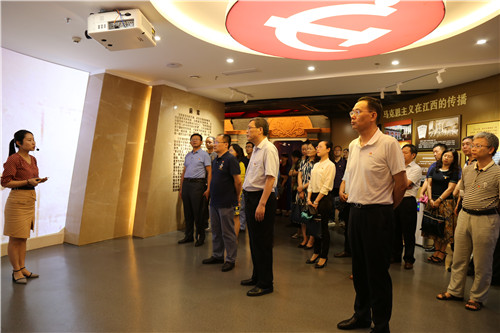 7月5日下午,学院组织全体副处级以上党员干部到南昌市党章教育馆参观学习,先后参观了党的纲领、党的组织、党的纪律、党员等篇章,回顾了党章的历史沿革,重温了入党誓词,参加了党章知识考试。