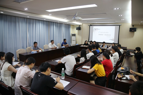 6月18日下午,学院“坚持立德树人根本任务,培养社会主义建设者和接班人”系列调研计划之关于“课程思政”主题调研的师生座谈会在行政楼四楼会议室举行。学院党委书记潘晓华,教务处、教学督导组代表、学工处、会计系及外语系课程思政工作负责人、部分参与“课程思政”教学改革教师代表及学生代表参加了座谈。