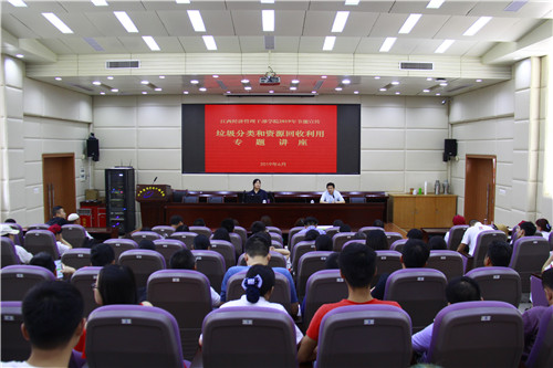 6月19日下午,学院在一教学术报告厅举办“垃圾分类和资源回收”专题讲座,邀请了江西中再生环保产业有限公司经理沈芳云来院宣讲,学院各系(部)、部门节能联络员,驻院所有经营单位和学生代表共120余人聆听了讲座。通过讲座,让大家对垃圾分类和资源回收有了深刻的认识,大家纷纷表示要积极为营造节能环保校园作出应有贡献。