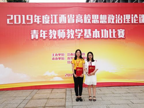 6月22至23日,2019年度江西省高校思想政治理论课青年教师教学基本功比赛在昌举行,我院思政部周易老师在《思想道德修养与法律基础》课程组比赛中荣获二等奖,廖志娟老师在《毛泽东思想和中国特色社会主义理论体系概论》课程组比赛中荣获三等奖。