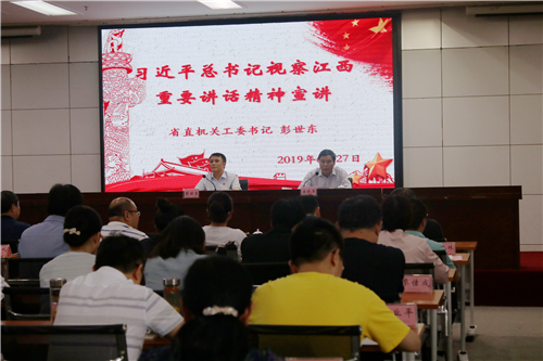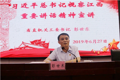 6月27日下午,学习贯彻习近平总书记视察江西重要讲话精神宣讲在学院举行,省委宣讲团成员、省直机关工委书记彭世东作宣讲报告。全省第18期市厅级、第33期县处级领导干部专业化能力培训班、全省首期城乡融合发展与乡村振兴研讨示范班的全体学员,全体在家院领导及副处级以上干部200余人参加报告会。报告会由学院党委书记潘晓华主持。