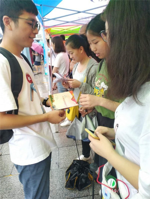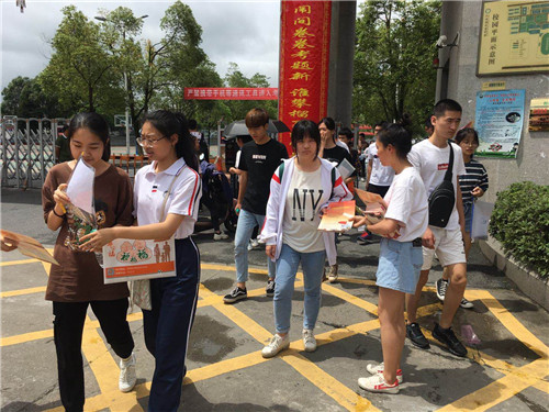 今年高考期间正值端午恰逢暴雨天气,各网络区负责人、200余名志愿者克服困难,深入各地高考考点宣传学院,发放宣传资料。