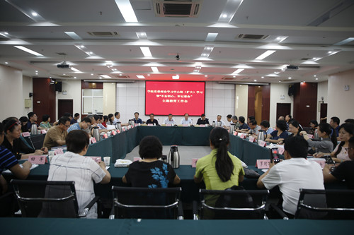 6月12日上午,学院党委书记潘晓华主持召开党委理论学习中心组(扩大)学习暨“不忘初心、牢记使命”主题教育工作会议。省委第八巡回指导组副组长许中伟到会指导并讲话,学院党委副书记、院长秦夏明,党委委员、副院长衷敬华作学习主题发言,全体在家院领导及副处级以上干部参加会议。