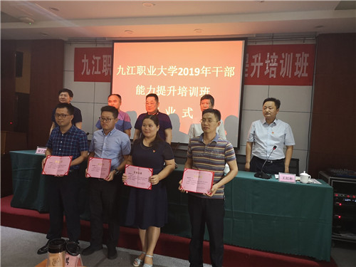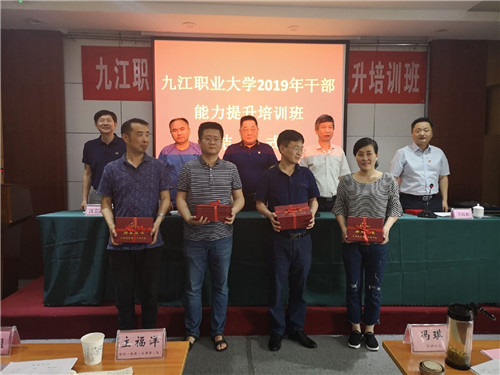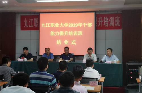 6月16日下午,九江职业大学2019年干部能力提升培训班在学院圆满结业。九江职业大学党委副书记周春明,党委委员、副校长艾斯卡尔.买买提、组织部长王红彬、办公室主任田立淼,学院培训处处长及全体学员参加了结业式。