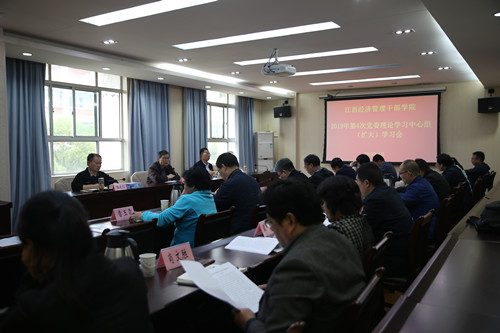 4月30日,学院党委书记潘晓华主持召开2019年第4次党委理论学习中心组(扩大)学习会,专题学习《中共中央关于加强党的政治建设的意见》和习近平总书记为第五批全国干部学习培训教材所作《序言》。在家党委理论学习中心组成员,以及各系党总支、直属党支部和直属机关党支部书记参加了本次学习会。