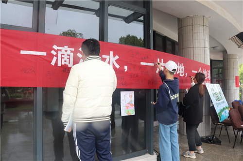3月28日,学院在大学生活动中心一楼开展第三十二届“中国水周”主题宣传教育活动。学院高度重视节能减排工作,院长秦夏明,副院长衷敬华到现场指导工作并参与了签名仪式,师生们也积极响应此次活动。