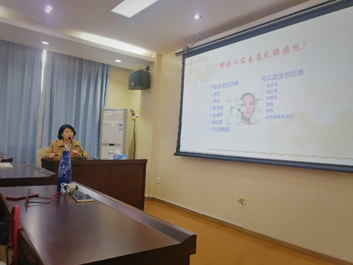 讲座上,肖主任结合自己多年的临床经验,用大量鲜活的实例给大家详细例举了生活中常见的妇科疾病的发生、发展过程。特别针对乳腺癌与子宫颈癌已成为女性健康的两大杀手这一特点,就如何防治两癌的发病率进行了详细的讲解,并教会大家早发现早预防的方法。同时提醒女性同胞平时多关心自身健康,定期去医院进行检查,发现问题应及时治疗,养成预防为主,治疗为辅的健康理念。