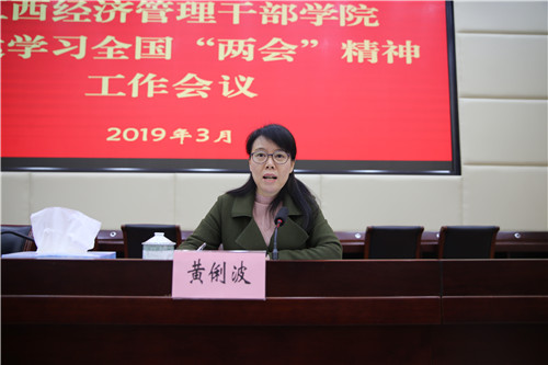 会上,黄俐波结合作为全国人大代表亲历全国两会的感受介绍了两会盛况,重点传达了习近平总书记在两会期间的重要讲话精神、李克强总理所做的政府工作报告以及栗战书委员长参加江西代表团审议时的讲话精神。