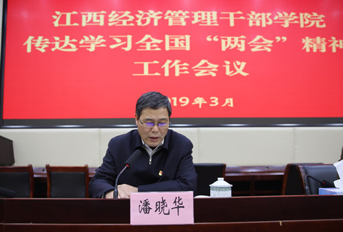 3月18日下午,学院党委书记潘晓华主持召开会议传达学习2019年全国两会精神。十三届全国人大代表、学院建筑工程系主任黄俐波,党委副书记、院长秦夏明,党委委员、副院长衷敬华、肖鸿晶、熊运儿,以及全院副处以上干部、全体辅导员参加了会议。