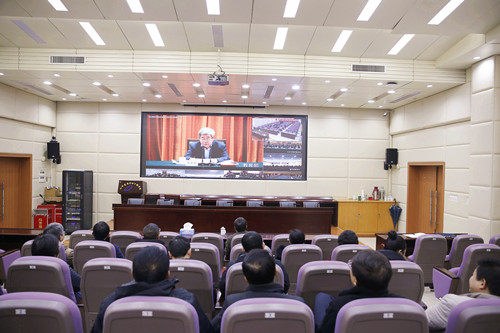 3月1日下午,2019年全国教育系统全面从严治党工作视频会议在京召开,教育部党组书记、部长陈宝生,中央纪委国家监委驻教育部纪检监察组组长、教育部党组成员吴道槐出席会议并讲话。学院在学术报告厅设立分会场,党委书记潘晓华,党委委员、副院长熊运儿,各系(部)书记,学院相关职能负责人参加收看了视频会议。