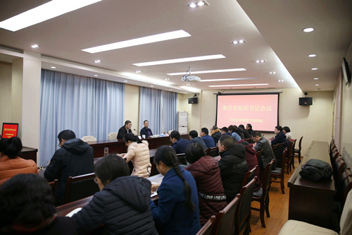 3月4日下午,学院党委书记潘晓华主持召开2019年总支(支部)书记第一次例会。会上传达了全省机关党的工作会议和第25次全省高校党的建设工作会议精神,并对学院下一步党建工作进行了部署。党委委员、副院长衷敬华,各系党总支书记、直属党支部书记、直属机关党支部书记参加会议。