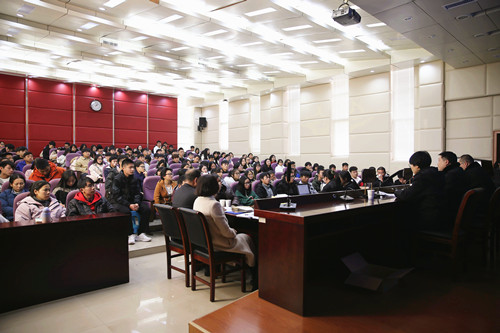 在一教学术报告厅内,整个庭审过程持续了近三个小时,经过了核对当事人、法庭调查、法庭辩论几个阶段,无论是审判长还是双方当事人的代理律师都表现出了较高的专业水平和敬业精神,让在座的师生受益匪浅。