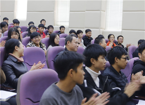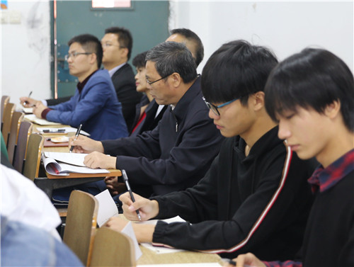 10月31日,学院党委书记潘晓华来到所联系的18财务管理班参加“双体验日”活动。思政课堂上,潘晓华和同学们一起认真听讲、做笔记,与任课教师交流探讨上好思想政治理论课的新方法新路子,与同学们分享学习经验。在食堂里,他与同学们一起用餐一起拉家常,了解学习生活状况,了解同学们对饭菜的满意度。在寝舍里,他嘱咐大家要养成良好的生活习惯、和谐相处。主题班会上,他与同学们谈理想谈人生、分享人生阅历与体会。最后,潘晓华还为同学们上了一堂精彩的形势政策课。他结合亲身经历,用一个个生动故事梳理了改革开放波澜壮阔的40年历程和成就,并重点阐述了改革开放以来我国高等教育取得的巨大成就和改革开放取得成功的经验,让大家对改革开放40年发展历程有了更全面的认识。