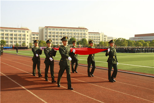 开幕式上,伴随着激扬的《运动员进行曲》,各方阵队依次走向主席台接受检阅,他们迈着整齐划一的步伐,手举旗帜,意气风发、步伐矫健,象征着运动健儿的勃勃生机。在庄严雄伟的国歌声中,五星红旗冉冉升起,运动员们神采奕奕,展示着新时代学子的如虹壮志和蓬勃朝气。