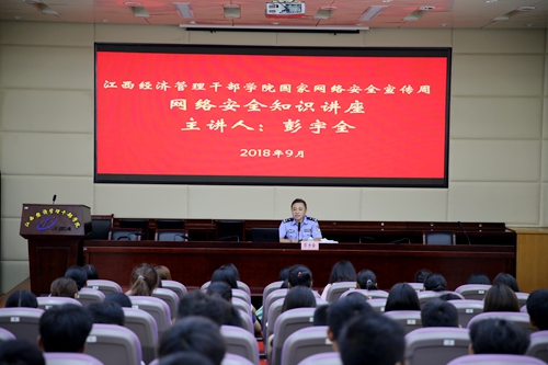9月20日下午,学院举办网络安全知识讲座,邀请了南昌市公安局网络安全保卫支队队长彭宇全来院宣讲。2018级新生听取了讲座。