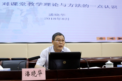 下午的研讨交流安排参会人员分为四个小组,分别就“如何提高课堂教学有效性”进行讨论,由各小组组长代表小组将分组讨论情况向大会汇报。研讨会最后,潘晓华书记以“对课堂教学理论与方法的一点认识”为主题,从横向与纵向的两个维度,全方位的解析“课堂教学”的理论与方法。